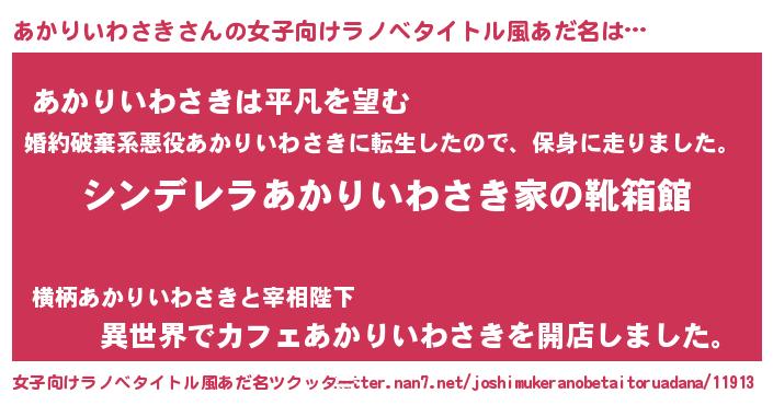 | 男性向けラノベタイトル風あだ名 | 『冴えないあかりいわさきの育てかた』 |
