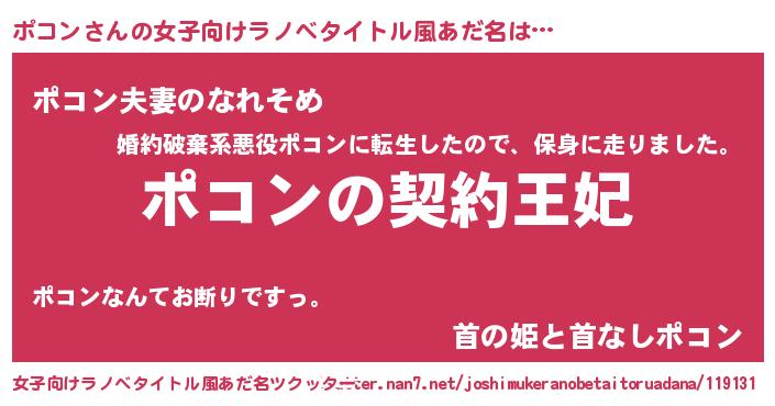| 男性向けラノベタイトル風あだ名 | 『誰もが恐れるあのポコンが、ぼくの専属メイドになるようです。』 |