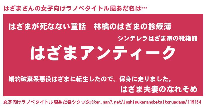 | 男性向けラノベタイトル風あだ名 | 『魔法科高校のはざま』『緋弾のハザマ』 |