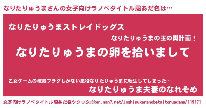 | 胡散臭い通販商品みたいなあだ名 | 『伝統あるサプリメント…その名も「なりたりゅうま」』 |