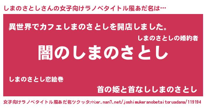 | 男性向けラノベタイトル風あだ名 | 『Re:しまのさとしから始める異世界生活』 |