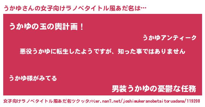 | ヘコむあだ名 | 『うかぷりん』『うかゆ(爆)』 |