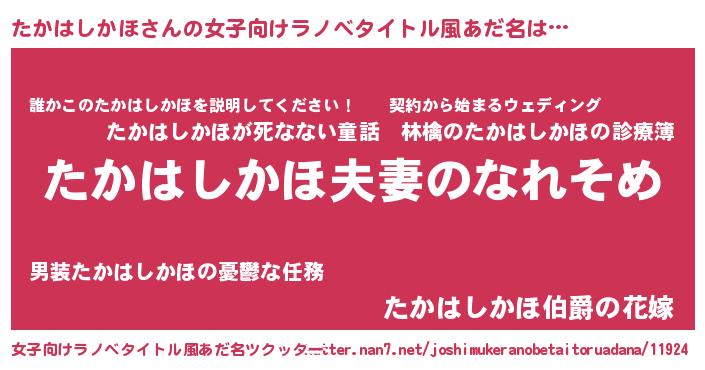 | 男性向けラノベタイトル風あだ名 | 『おまえをオタクにしてやるから、俺をたかはしかほにしてくれ! 』 |