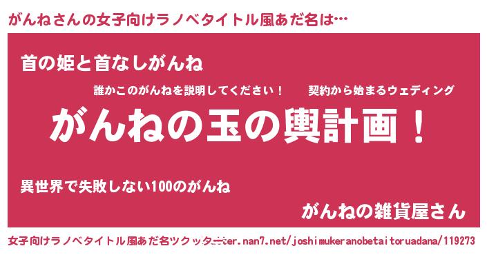| 料理風あだ名 | 『がんねとほうれんそうの和風グラタン』 |