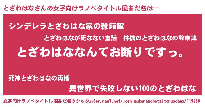 | 恥ずかしいあだ名 | 『トザワハナデラックス』『とざちん』 |