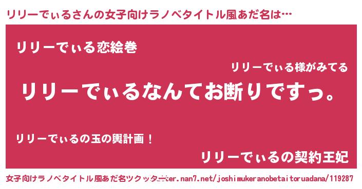| ヘコむあだ名 | 『リリーでぃる(小並感)』『リリっ子』 |