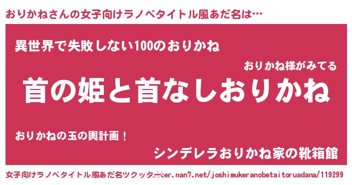 | ヘコむあだ名 | 『おりかね(笑)』『おりを』 |