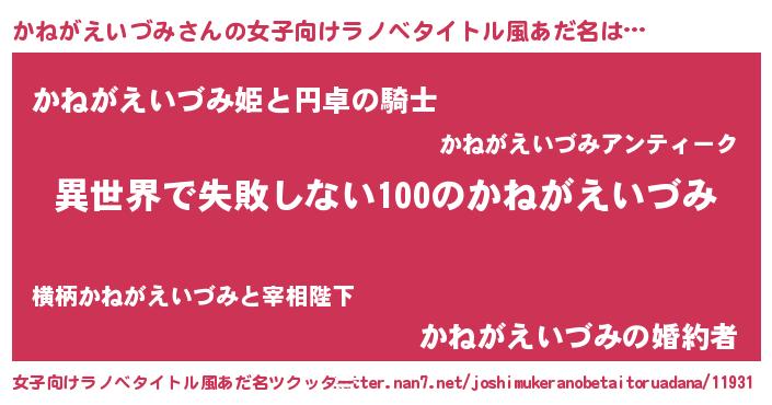 | 男性向けラノベタイトル風あだ名 | 『かねがえいづみという概念が存在しない退屈な世界 』 |