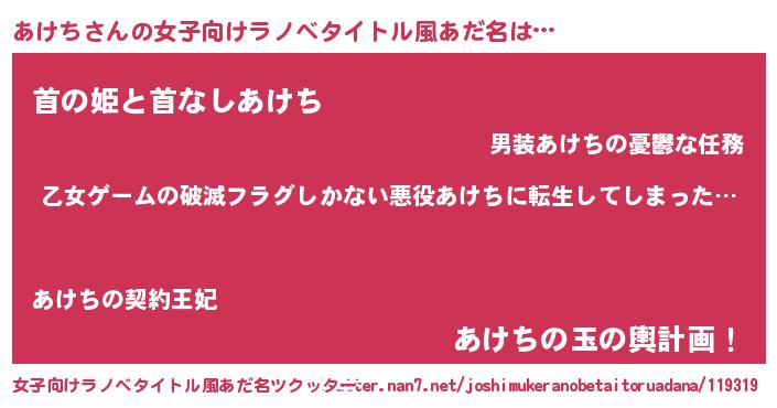 | 胡散臭い通販商品みたいなあだ名 | 『世界中を虜にした100年もののヴィンテージワイン…その名も「あけち」』 |