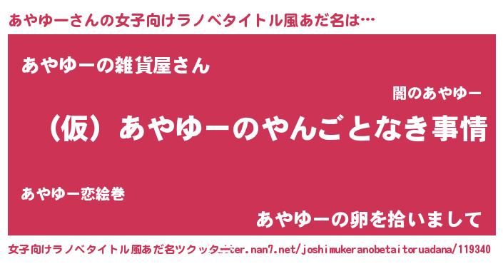 | 男性向けラノベタイトル風あだ名 | 『あやゆーの憂鬱』 |