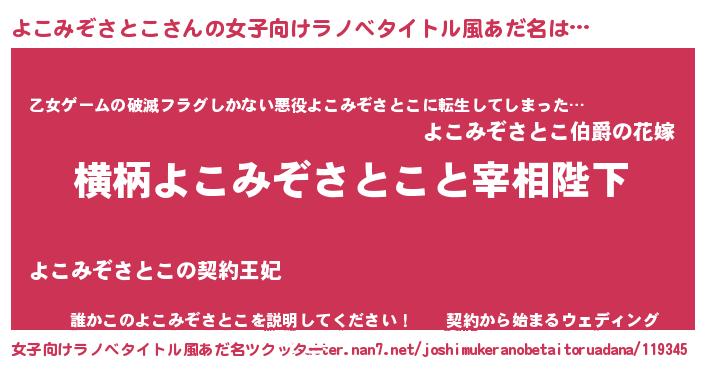 | 意味不明あだ名 | 『住所不定無職よこみぞさとこ(98歳)』 |
