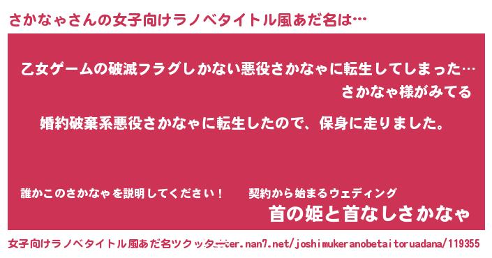 | 男性向けラノベタイトル風あだ名 | 『転生したらさかなゃだった件』 |