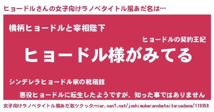 | ピコ太郎風あだ名 | 『ヒョ二郎』『ピコヒ郎』『ヒコ十郎』 |