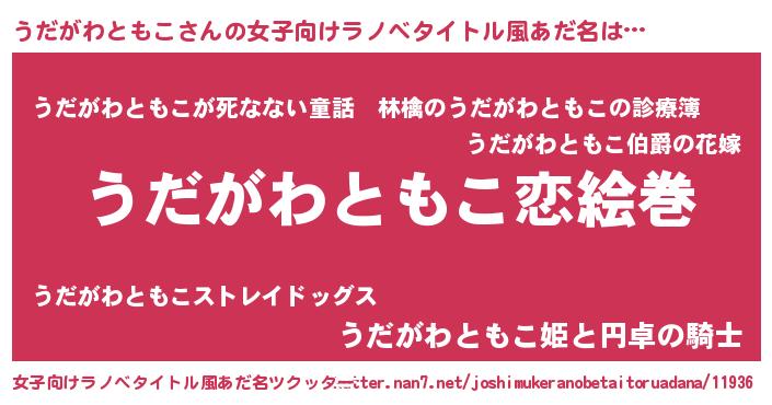 | 男性向けラノベタイトル風あだ名 | 『ノーゲーム・ノーウダガワトモコ』 |