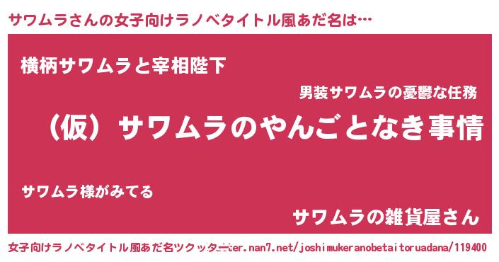 | 男性向けラノベタイトル風あだ名 | 『サワムラの憂鬱』 |