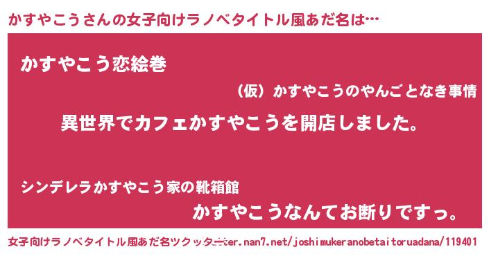 | ヘコむあだ名 | 『かすやこう(笑)』『かすにー』 |
