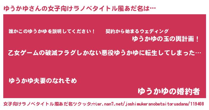 恥ずかしいあだ名 | 『プリティーゆうかゆ』『ゆうっちょ』 |