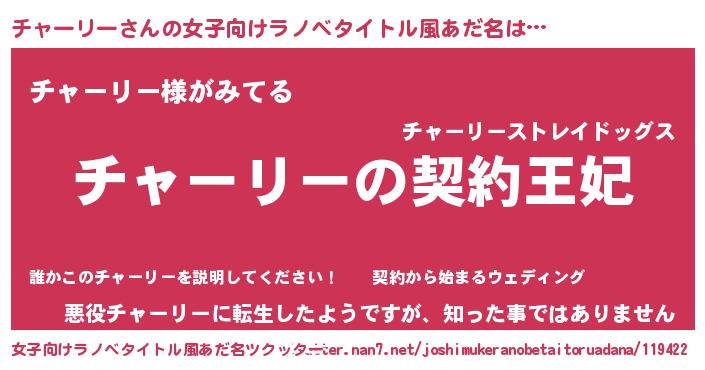 | 男性向けラノベタイトル風あだ名 | 『チャーリーという概念が存在しない退屈な世界 』 |