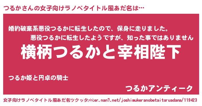 | 男性向けラノベタイトル風あだ名 | 『つるかに滅ぼされるだけの簡単なお仕事です』 |