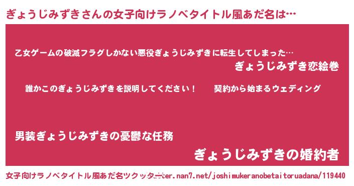 | 男性向けラノベタイトル風あだ名 | 『ギョウジミズキアートオンライン』 |