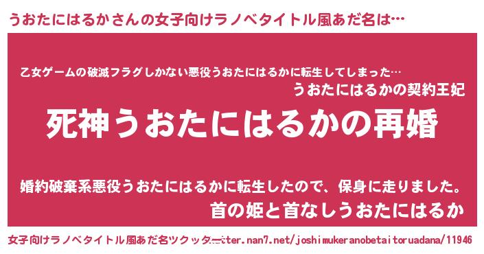 | 男性向けラノベタイトル風あだ名 | 『ノーゲーム・ノーウオタニハルカ』 |