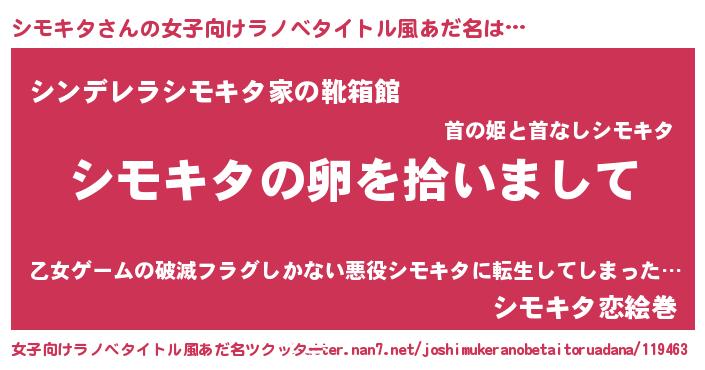 | ヘコむあだ名 | 『シモっちょ』『シモキタ(震え声)』 |