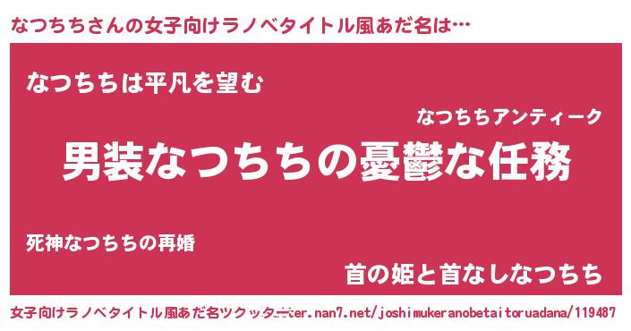 | 男性向けラノベタイトル風あだ名 | 『うちのなつちちが世界を掌握している!』 |