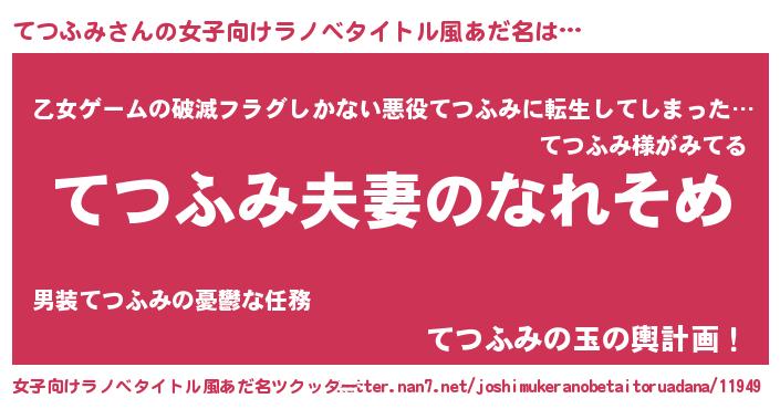 | 男性向けラノベタイトル風あだ名 | 『おまえをオタクにしてやるから、俺をてつふみにしてくれ! 』 |