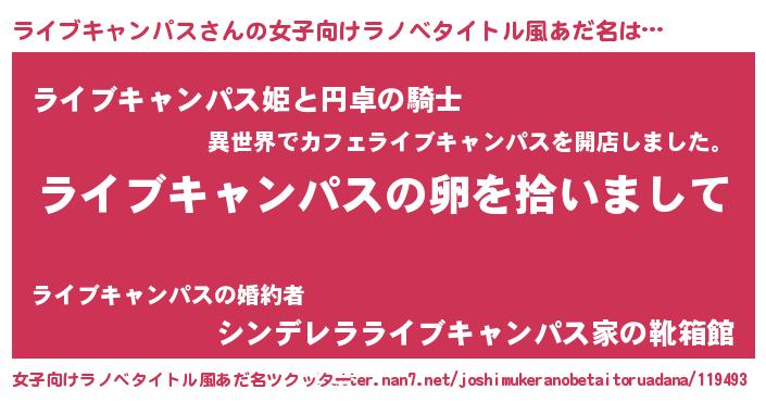 | 男性向けラノベタイトル風あだ名 | 『ダンジョンにライブキャンパスを求めるのは間違っているだろうか』 |