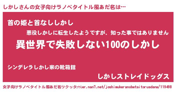 | 男性向けラノベタイトル風あだ名 | 『しかしという概念が存在しない退屈な世界 』 |