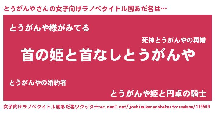 | 男性向けラノベタイトル風あだ名 | 『はたらくとうがんやさま!』 |