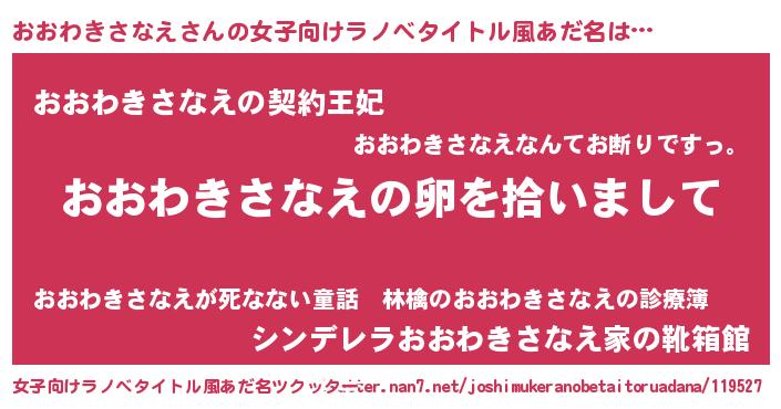 | 男性向けラノベタイトル風あだ名 | 『おおわきさなえの嫁は女の子じゃないと思った?』 |