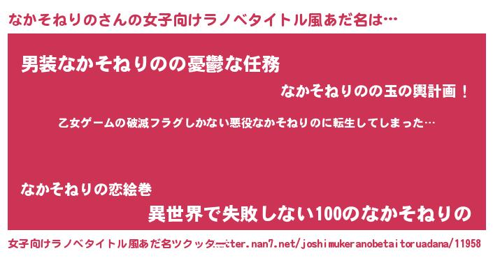 | 男性向けラノベタイトル風あだ名 | 『魔弾の王となかそねりの』 |