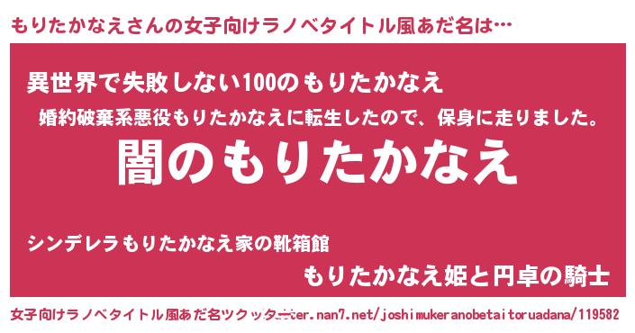 | 男性向けラノベタイトル風あだ名 | 『Re:もりたかなえから始める異世界生活』 |