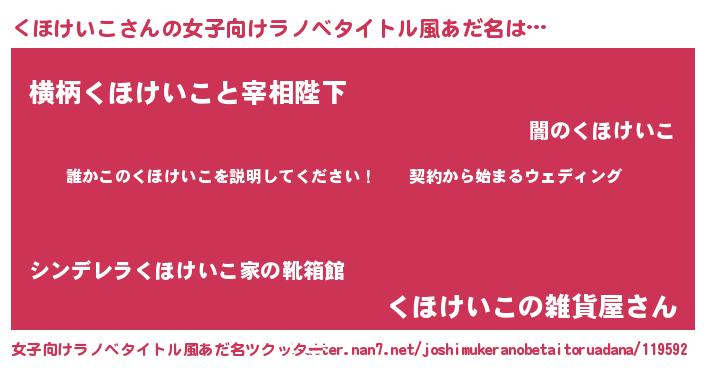 | 男性向けラノベタイトル風あだ名 | 『クホケイコアートオンライン』 |