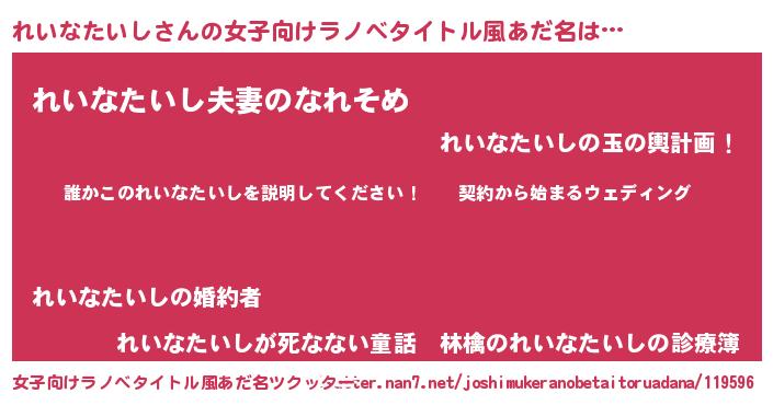 | 胡散臭い通販商品みたいなあだ名 | 『億万長者になれるブレスレット…その名も「れいなたいし」』 |