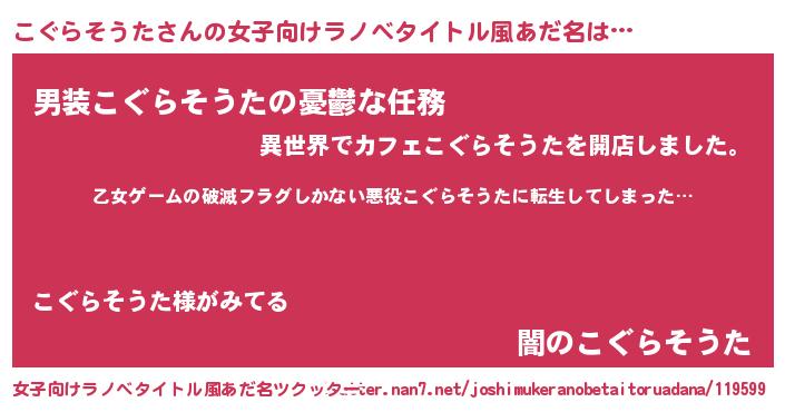 | ヒーロー風カッコイイあだ名 | 『仮面コグダー』『究極戦士コグラソウタ』 |