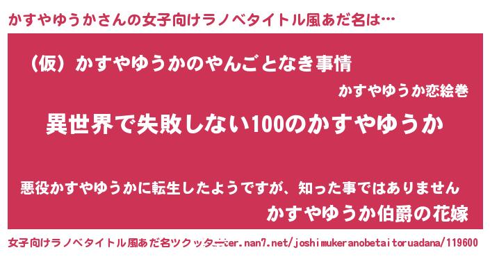 | 男性向けラノベタイトル風あだ名 | 『かすやゆうかという概念が存在しない退屈な世界 』 |