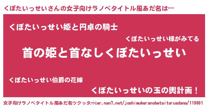 | 胡散臭い通販商品みたいなあだ名 | 『必ず成功するブレスレット…その名も「くぼたいっせい」』 |