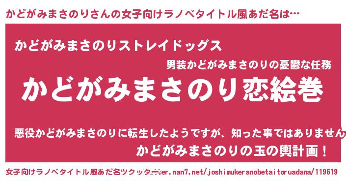 | 肩書あだ名 | 『かどがみまさのり助教授』 |