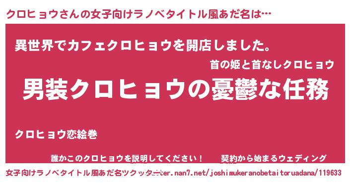 | ヘコむあだ名 | 『クロヒョウ(遠い目)』『クロにゅー』 |