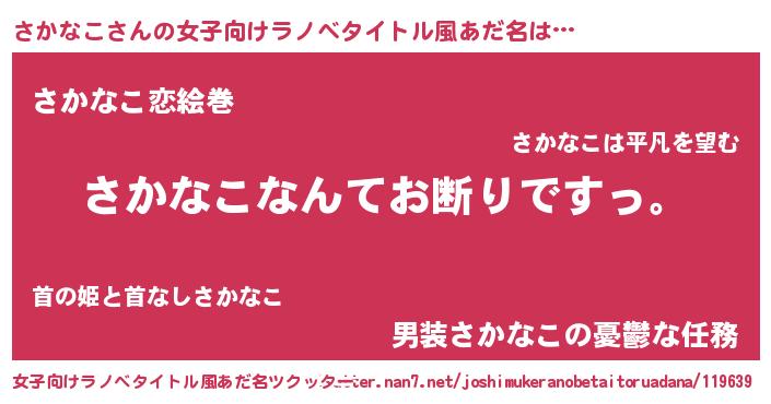 | 意味不明あだ名 | 『自称さかなこ』『永久保存さかなこ』 |