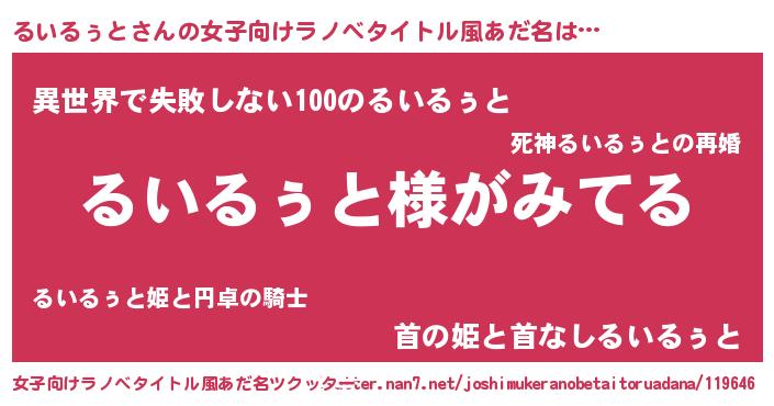 | ヘコむあだ名 | 『るいっちょ』『るいるぅと(笑)』 |