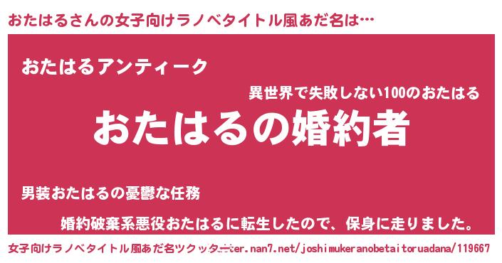 | 胡散臭い通販商品みたいなあだ名 | 『運命の人と巡り会える高級そうな絵画…その名も「おたはる」』 |