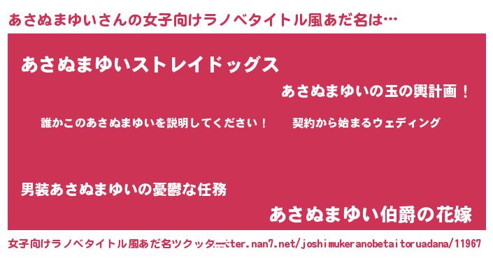 | 胡散臭い通販商品みたいなあだ名 | 『億万長者になれる霊験あらたかなお札…その名も「あさぬまゆい」』 |