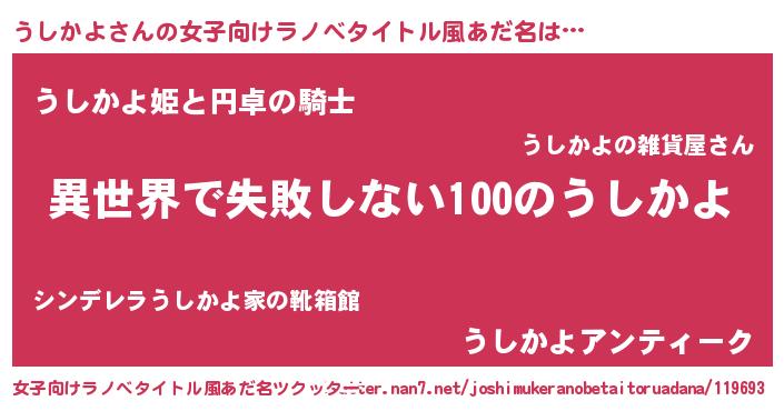 | ヒーロー風カッコイイあだ名 | 『ネオウシカヨ』『スーパーウシカヨ』 |