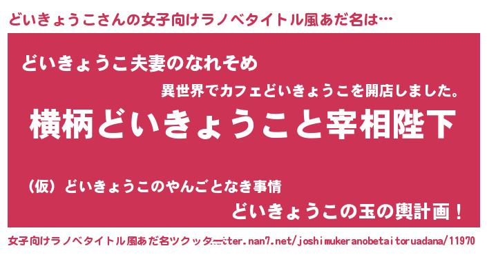 | 男性向けラノベタイトル風あだ名 | 『どいきょうこに滅ぼされるだけの簡単なお仕事です』 |