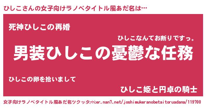| 男性向けラノベタイトル風あだ名 | 『冴えないひしこの育てかた』 |