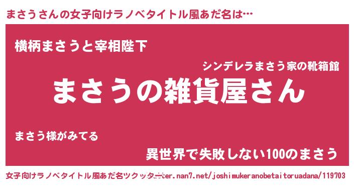 | 男性向けラノベタイトル風あだ名 | 『やはりまさうの青春ラブコメはまちがっている 』 |