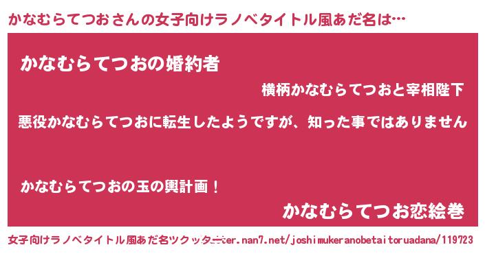 | 意味不明あだ名 | 『住所不定無職かなむらてつお(68歳)』 |